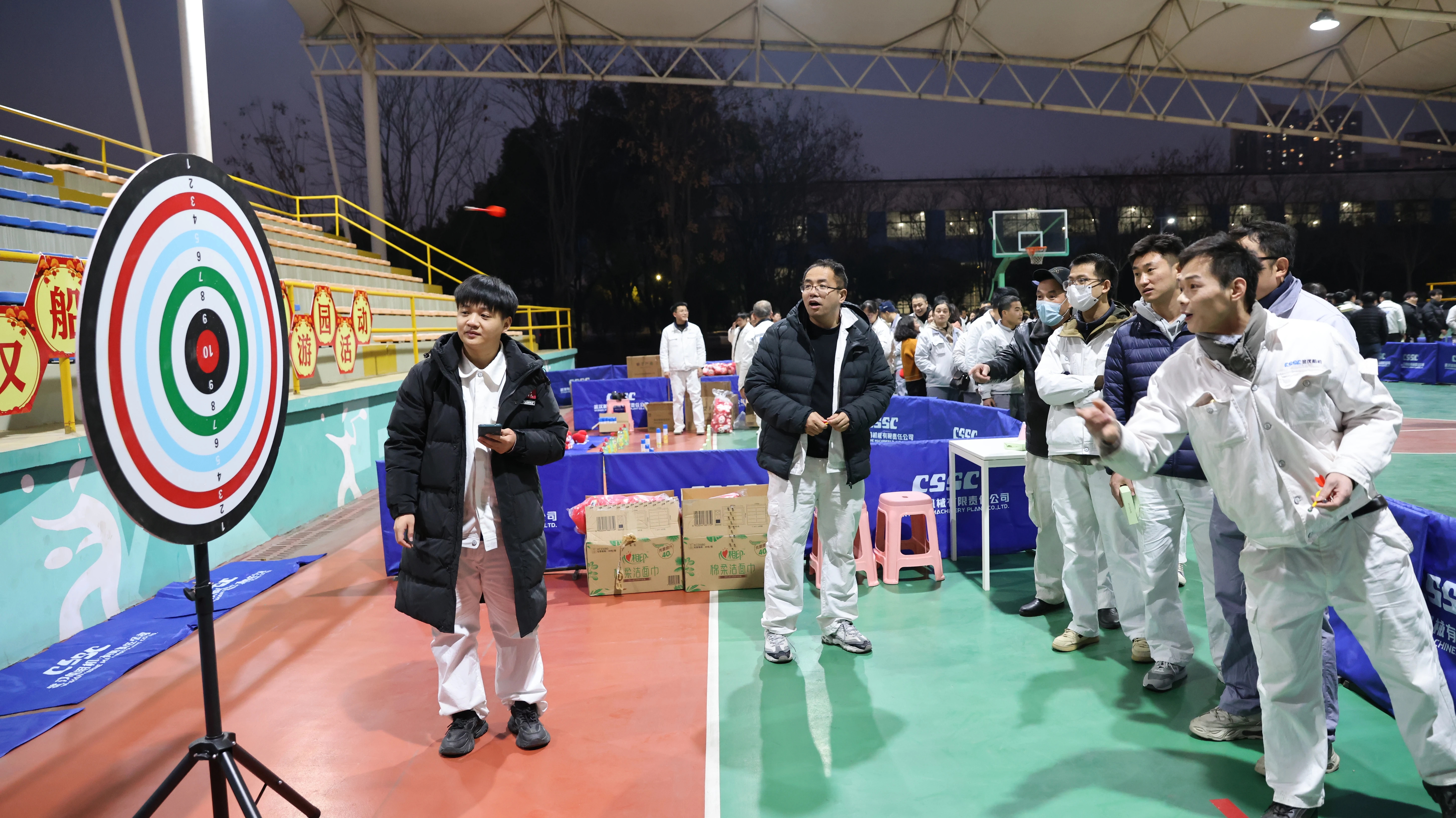 此次活動(dòng)分為百發(fā)百中、飛躍2025、眼疾手快、環(huán)環(huán)相扣、立瓶有喜、幸運(yùn)轉(zhuǎn)盤六個(gè)趣味項(xiàng)目。大家熱情參與,每項(xiàng)活動(dòng)都人氣爆棚,員工們大展身手,各顯神通,“百發(fā)百中”投籃機(jī)前有彈無(wú)虛發(fā)的“神投手”,“眼疾手快”抓棍機(jī)前有反應(yīng)敏捷的“閃電俠”,“飛躍2025”飛鏢盤前有次次命中靶心的“武林高手”,“立瓶有喜”前有水瓶翻轉(zhuǎn)一圈后穩(wěn)穩(wěn)立起的達(dá)人,幸運(yùn)轉(zhuǎn)盤有手氣極佳的“幸運(yùn)兒”,套圈現(xiàn)場(chǎng)有套中各樣獎(jiǎng)品的陣陣歡呼……幾場(chǎng)活動(dòng)下來(lái),有的喜提蛇年生肖娃娃,有的獲得了各式小禮品,有的現(xiàn)場(chǎng)曬起了朋友圈,燈火闌珊下員工們笑容滿面,暢聊著美好未來(lái),對(duì)新的一年充滿了無(wú)限期待。