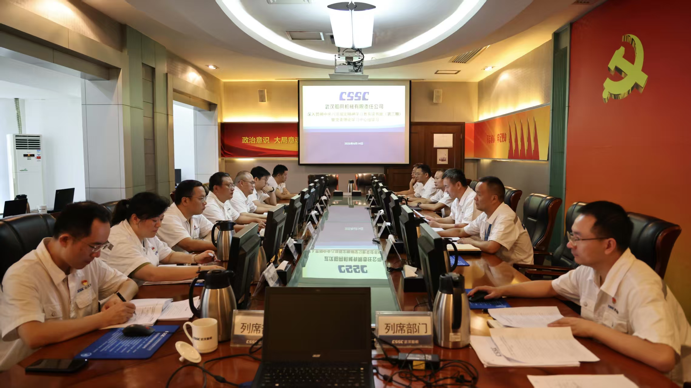 6月14日,中船集團(tuán)武漢船機(jī)黨委召開深入貫徹中央八項(xiàng)規(guī)定精神學(xué)習(xí)教育讀書班(第三期)暨黨委理論學(xué)習(xí)中心組學(xué)習(xí)會議。公司黨委副書記、總經(jīng)理程立兵主持會議并領(lǐng)學(xué)。公司黨委理論學(xué)習(xí)中心組成員參加學(xué)習(xí)研討,總經(jīng)理助理、學(xué)習(xí)教育工作專班成員列席會議。